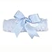 Blue embossed polka dot plush satin-lined safety blanket with satin trim is rolled with a satin bow.