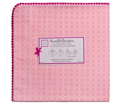 The SwaddleDesigns Ultimate Receiving Blanket - Mini Mod Circles on Pink with Very Berry Trim Description